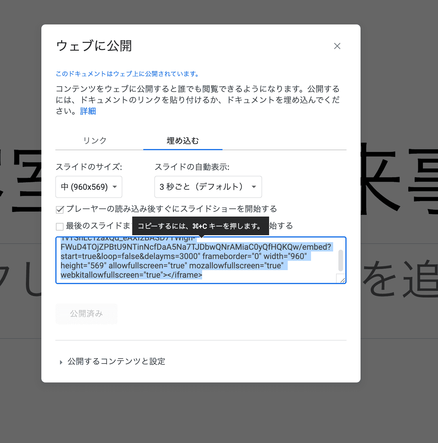 こんな感じにGoogleSlidesをGatsbyjsで作成したブログに埋め込むことができます。